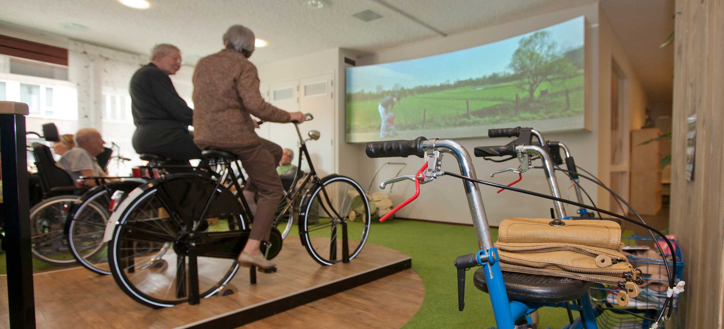 De interactieve fietsinstallatie Buitenkomtvoorbij brengt ouderen in woonzorgcentra fysiek en mentaal in beweging.